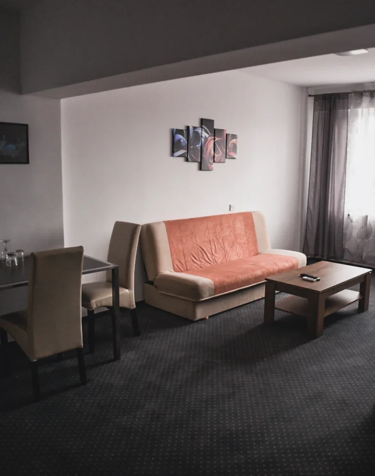 Apartamentul este conceput pentru oaspeții care își doresc mai mult spațiu, intimitate și confort pe durata șederii. Ideal pentru familii, călători în interes de afaceri sau pentru cei care plănuiesc un sejur mai lung, acest apartament oferă o experiență rafinată, cu zone separate de zi și de dormit – perfecte pentru relaxare sau lucru într-un cadru elegant.